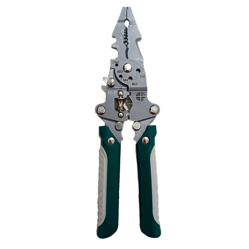 این محصول یک سیم لخت کن چندکاره است که برای انجام کارهای الکتریکی مختلف طراحی شده است. ویژگیهای اصلی: قابلیتهای چندگانه: این ابزار علاوه بر لخت کردن سیم، توانایی برش، پرس سرسیم (کریمپ کردن) و پیچش سیم را نیز دارد. ظرفیت لخت کنی: معمولاً برای لخت کردن سیمهایی با قطرهای مختلف (مانند 0.8 تا 2.6 میلیمتر) مناسب است. جنس و طراحی: دارای بدنه مقاوم و ضدزنگ است و دستههای آن معمولاً ارگونومیک و ضدلغزش طراحی شدهاند تا راحتی و کنترل بیشتری را فراهم کنند. کاربرد: ابزاری ضروری برای برق کاران حرفهای و همچنین برای استفاده در پروژههای خانگی، تعمیرات خودرو و تابلوهای برق است. دقت: دارای درجهبندی دقیق روی تیغهها برای لخت کردن سیمها با اندازههای مشخص (مانند M2.5, M3, M3.5, M4) است.